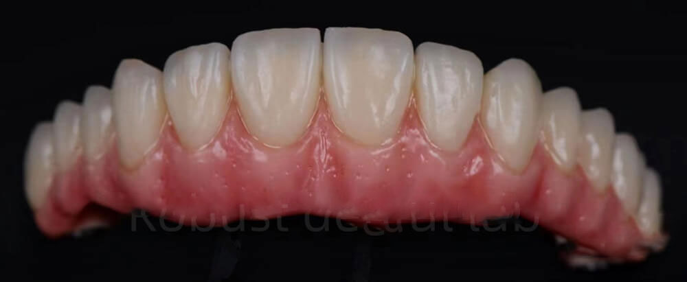 - 5) Fewer implants — doctors only need 4 implants to make such a bridge. Patients do not need to suffer from having too many implants. Dentists spend less time on surgical operation.
