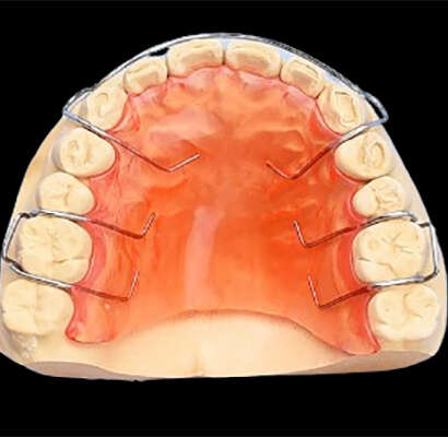 The Hawley Retainer is a durable, removable orthodontic appliance designed to maintain tooth alignment after active orthodontic treatment. Made from a combination of metal wire and medical-grade acrylic, the retainer features a custom-molded plate that fits the patient’s palate and a thin wire that rests across the front teeth for optimal retention and comfort.