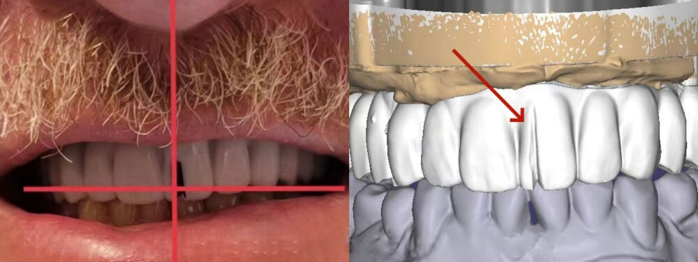 About 10 days later, the dentists tried fitting and bite. The fitting and bite were great, but the mid-line required adjustment. The dentist marked a new mid-line and took some pictures. Then our customer shipped everything back to us, including the 3D printed models, the aluminum bar,  the 3D printed bridge and a new bite registration. We also received pictures with the correct mid-line.